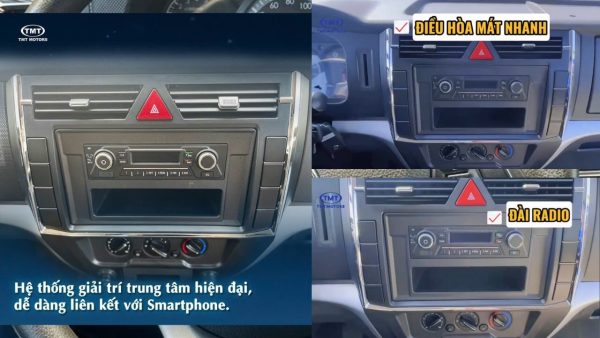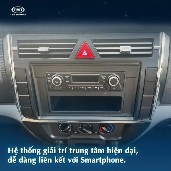 Hệ thống giải trí trung tâm của Xe Tải 2 Tấn 5 Tmt E250 Captain Thùng Kín hiện dễ dàng liên kết với Smartphone. Kết hợp dài Radio bluetooth đàm thoại dảnh tay hiện đại.